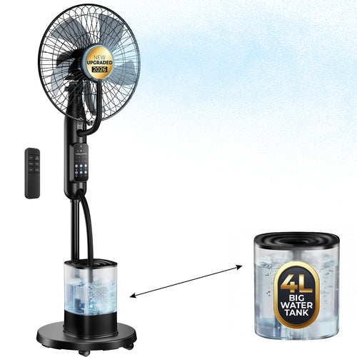 Misting Fan, 2026 Upgraded 4L Large Water Tank Mister Cooling Fan, 5 Speeds 3 Modes Misting Standing Fan